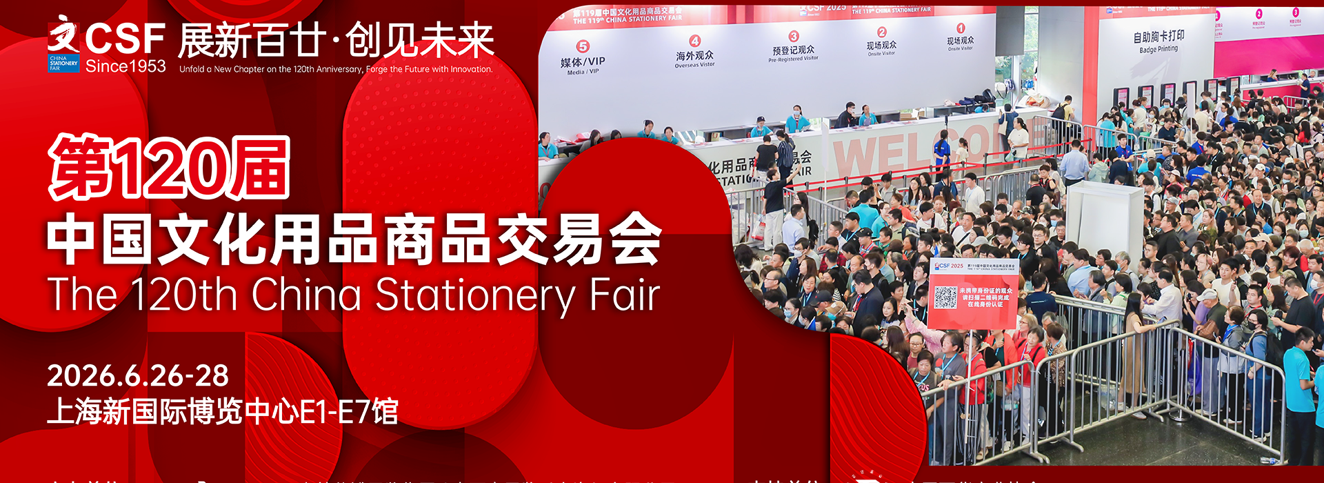 SHANGHAI · 中国文化用品商品交易会: 中国文化用品商品交易会(简称“CSF文化会”)是亚太地区历史悠久的文化办公及文创潮流领域的国际性盛会。自创始以来,中国文化用品商品交易会已跨越双甲子,亲历并推动了整个行业的每一次变革与飞跃。站在双甲子的新起点,第120届盛典不仅是历史的荣耀见证,更是未来趋势的启航之地。 “第120届中国文化用品商品交易会”将携手第27届华礼展于2026年6月26-28日在上海新国际博览中心举办。